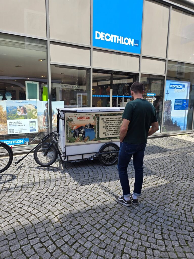 L’affichage sur vélos cargo reste un format encore sous-exploité en créativité. Par conséquent, nous offrons une opportunité unique d’innover. En effet, avec des visuels grand format et des designs percutants, nous captons l’attention sous tous les angles. De plus, nous vous accompagnons dans la conception de visuels impactants afin de générer un engagement fort auprès de votre audience.